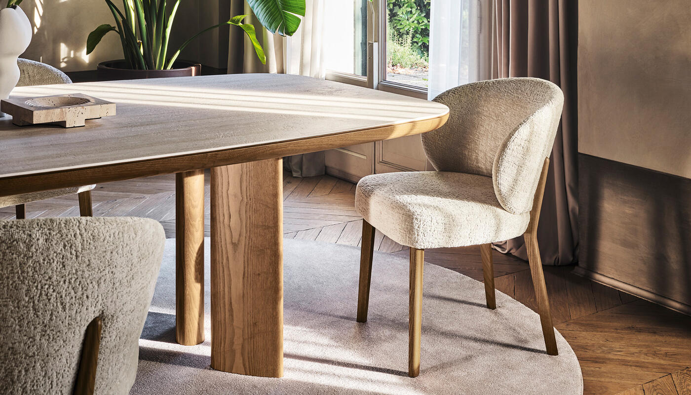 A spacious, comfortable seat that is as welcoming as any armchair could be. With the comfort provided by the wrap-around backrest and the elegant detail of the back legs that rise to provide support for the backrest, the Mara chair is at its best, making it the ideal companion for the dining table.