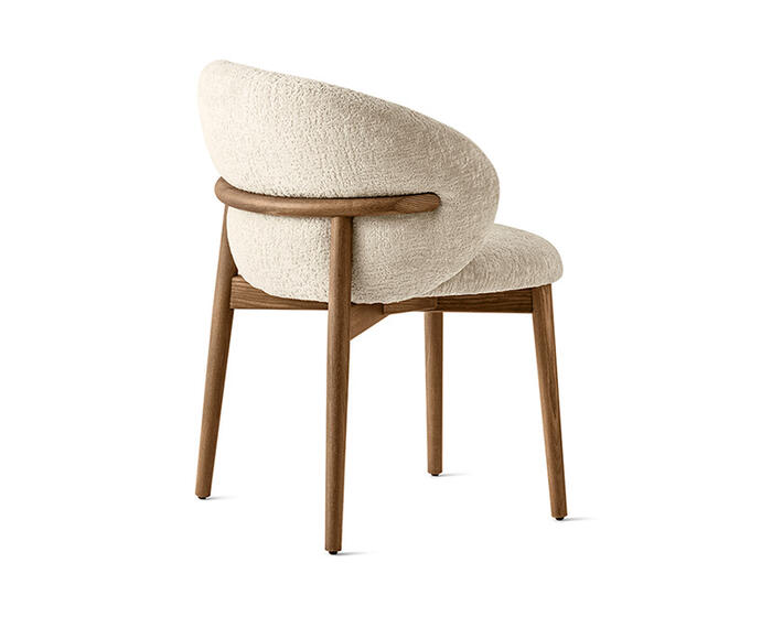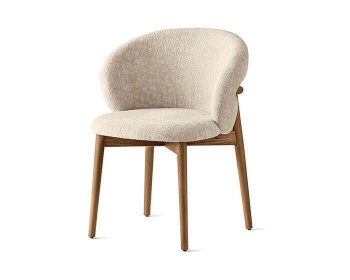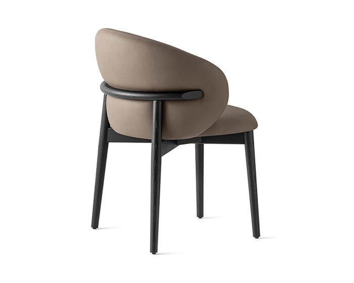 The full-back OLEANDRO chair pairs solid wood craftsmanship with generous, wraparound comfort. Its fully padded seat and backrest offer a soft, supportive feel, while the refined detail at the top of the wooden frame adds a subtle design touch. With a wide range of upholstery options, it’s a versatile piece that brings warmth and poise to any dining setting.