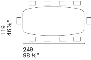 W 249 x D 119 x H 74(68.5) cm.