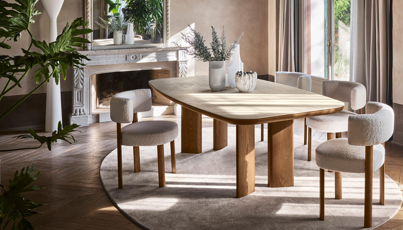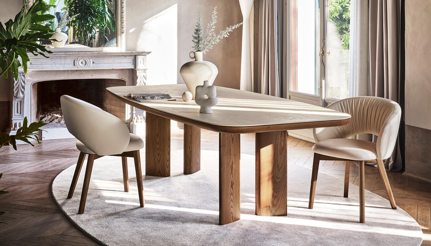 A table with a bold yet sober and elegant presence, which can be easily paired with any of the chairs in the Calligaris collection.
