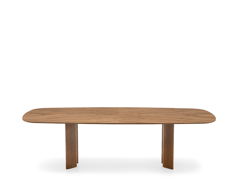 Sandy is a collection of tables that feature a teardrop leg, a cross-section with a sophisticated design that can accommodate different table top geometries – rectangular, round or oval, both fixed and extendable.