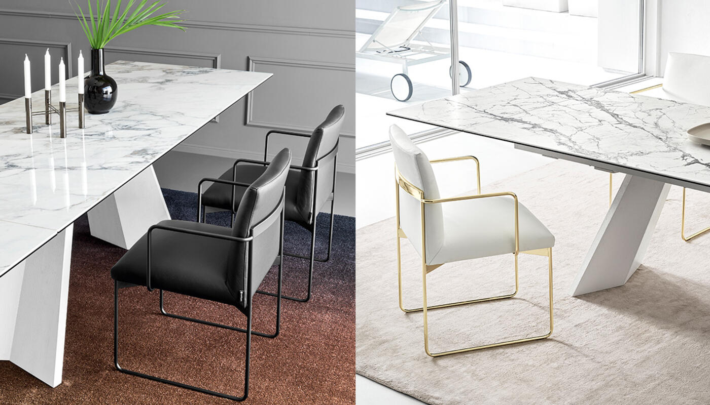 Choose from the subtle metallic allure of black or brass, harmonized with the warmth of rich velvet or the timeless elegance of genuine leather, creating a striking contrast that elevates your dining space.