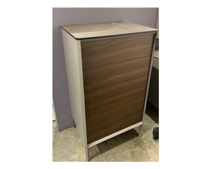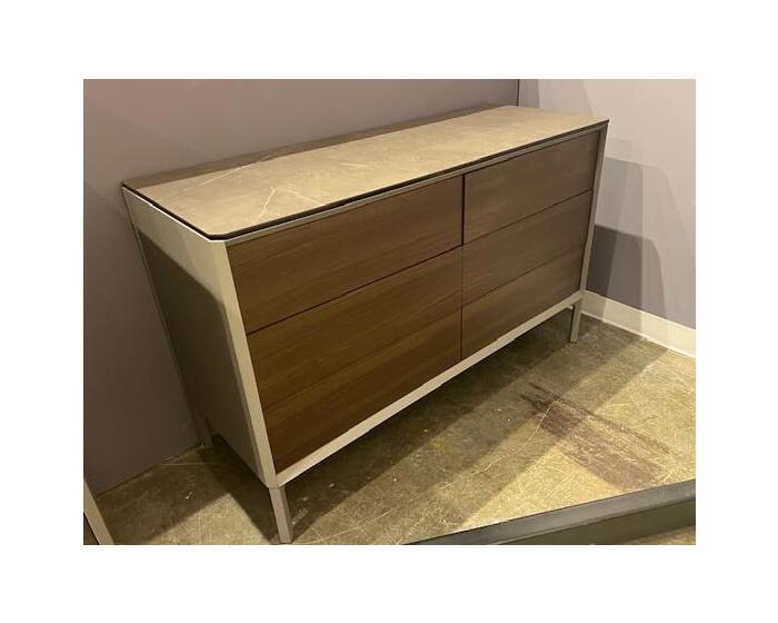 Body in Taupe with smoked wood drawer front and a bronze ceramic marble top