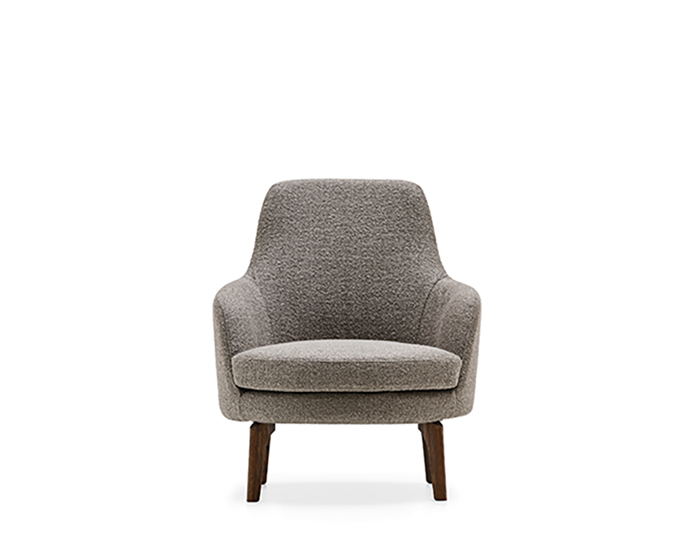 Medea is a lounge chair that brings together classical references and soft, contemporary lines. Its wooden base lends warmth and balance, while the compact proportions give the design a composed, intimate character. Elegant without being formal, Medea is designed to create relaxed seating moments, fitting naturally into living areas and more private spaces alike.