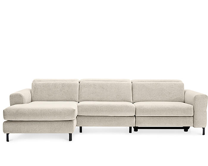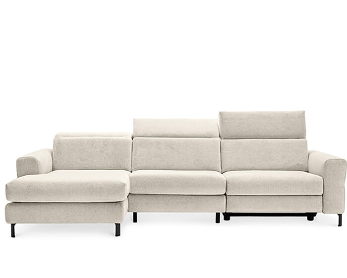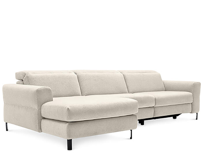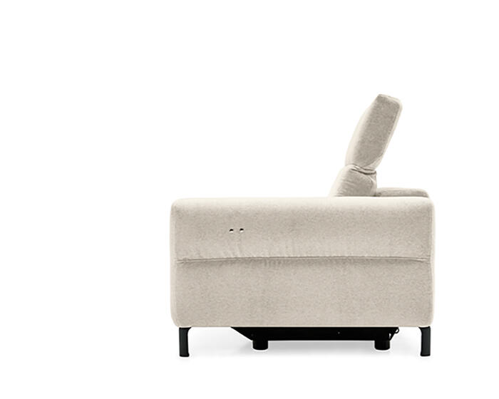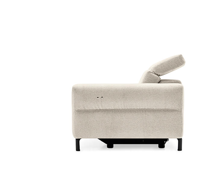Norma is a sofa where traditional lines quietly give way to advanced comfort. Beneath its composed exterior lie two integrated mechanisms designed to support relaxation: a manually reclining backrest and an electric footrest that extends smoothly at the touch of discreet buttons built into the armrest.