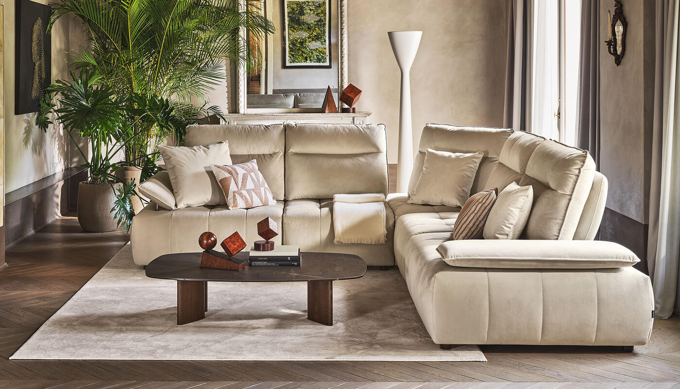 Discover sofas designed around comfort, proportion, and flexibility. The Calligaris collection includes sofas and sectionals with configurable layouts and made-to-order upholstery in fabric or leather. Refine each piece to suit the room through scale, finish, and detailing, with select models offering integrated trays or shelving and adjustable elements such as backrests, armrests, headrests, footrests, and pull-out seating.