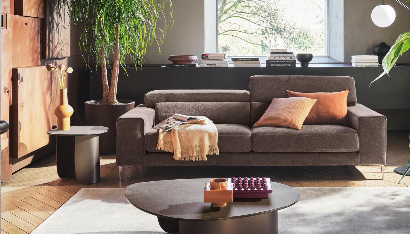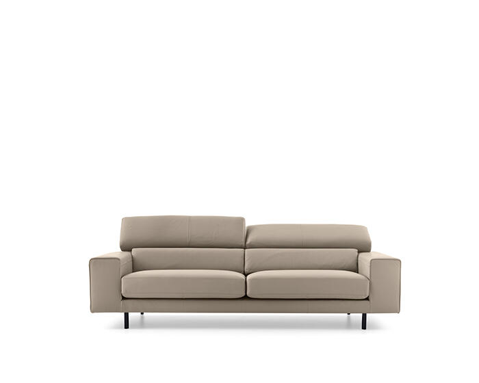 Edgar is a sofa conceived around the pleasure of sitting well. Its deep seat encourages a relaxed posture, while the adjustable headrest allows comfort to be fine-tuned with ease. Defined by square forms softened with gentle rounding, the design feels substantial yet welcoming.